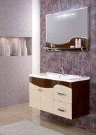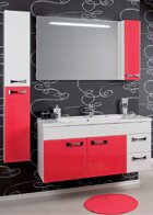 • Тумбу-умывальник (500x1090x432) мм. В тумбе установлена удобная система организации пространства, а за большим фасадом, помимо основного ящика, непосредственно под раковиной, предусмотрен скрытый ящик, предназначенный для мелких предметов. На дне ящиков – специальные антискользящие коврики, благодаря которым предметы, сложенные в ящики, не скользят и не гремят при открывании и закрывании.