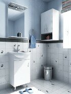 Комплект мебели "Сити 40" включает тумбу 42 см., раковину 45 см., зеркало 45 см. с подсветкой и полкой.