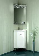 Комплект мебели "Стиль-45 угловой" включает тубму, раковину 85 см, зеркало с подстветкой, полочкой и шквафом (слева, либо справа).