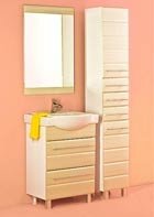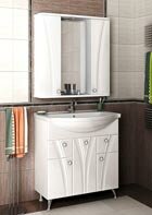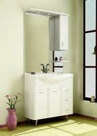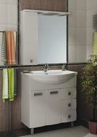 Комплект мебели "Стиль-85" включает тубму, раковину 85 см, зеркало с подстветкой, полочкой и шквафом (слева, либо справа).